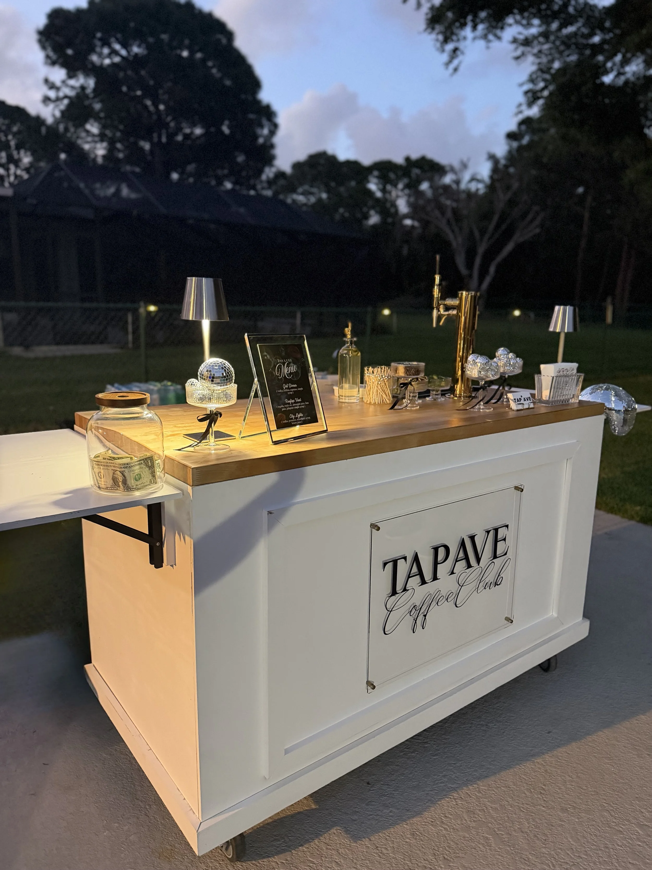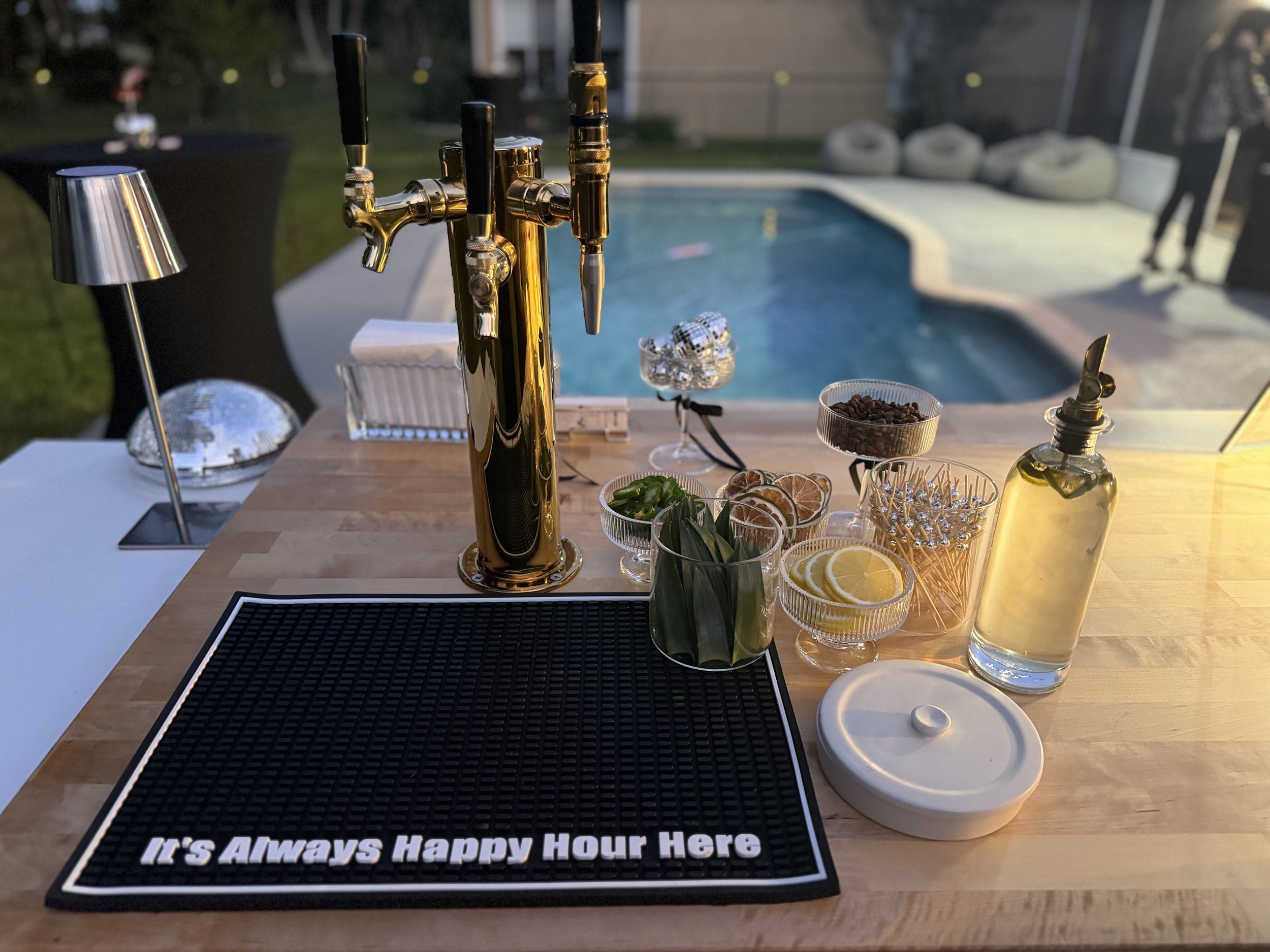 Our tap pop-up bar combines elegance with modern convenience. Perfectly styled to serve craft cocktails, cold brew, or mocktails with charm. Ideal for smaller parties and intimate events, it brings a cozy, boutique feel to every gathering.